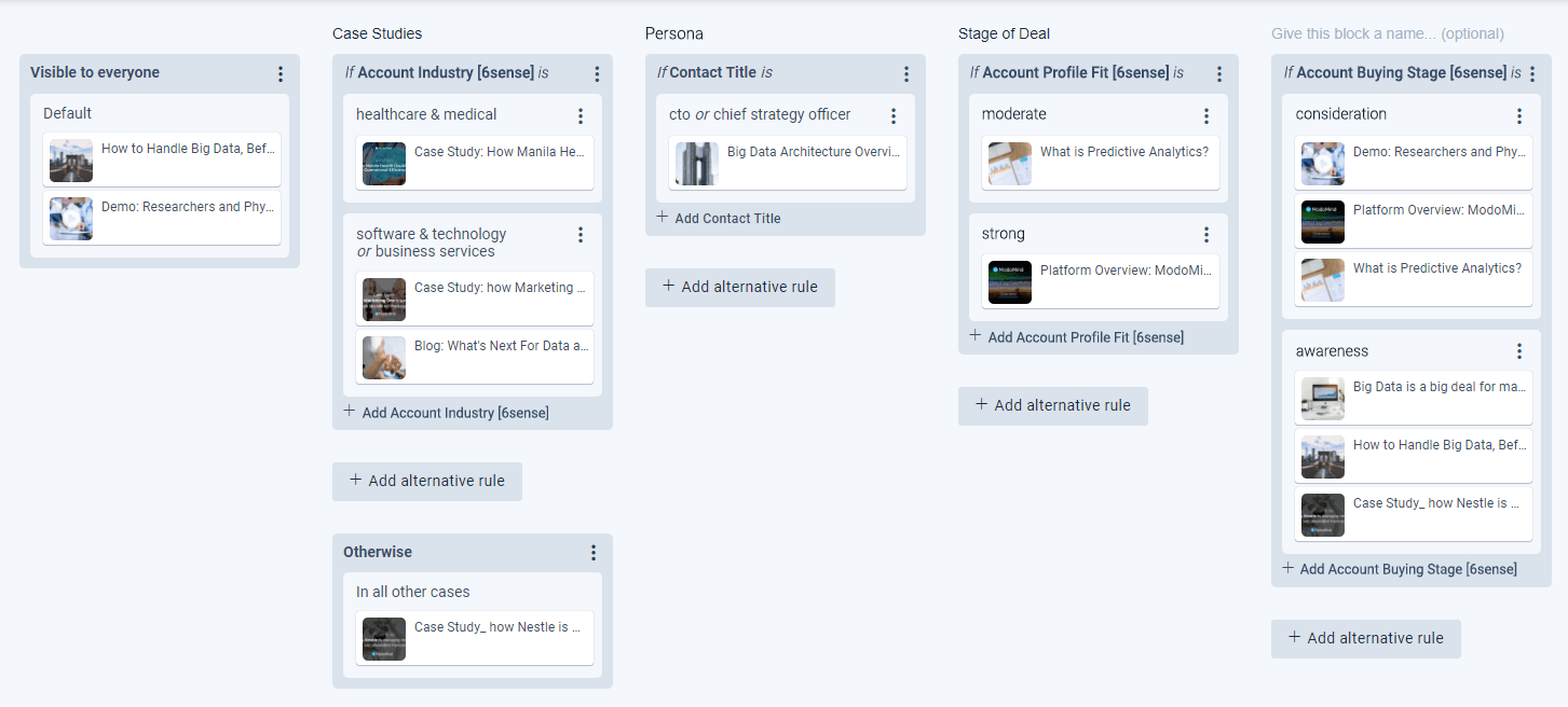 If you're a current 6sense customer, I can't recommend enough that you connect 6sense and Folloze ASAP! The ability to leverage 6sense data and segments natively within Folloze - like you would when setting personalization rules for a Board - is incredibly easy to learn, and more importantly, opens up so many more options to how to deliver the most relevant content within your marketing programs.