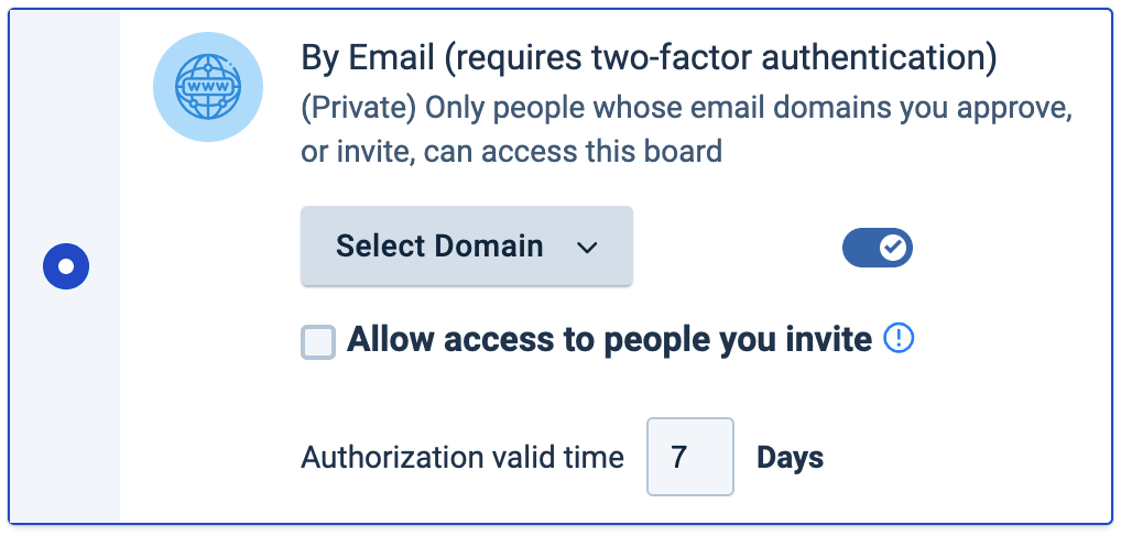 In our March release, we improved how Boards can be protected by expanding Board-level Access & Security settings to include 2-factor authentication in addition to password protection.