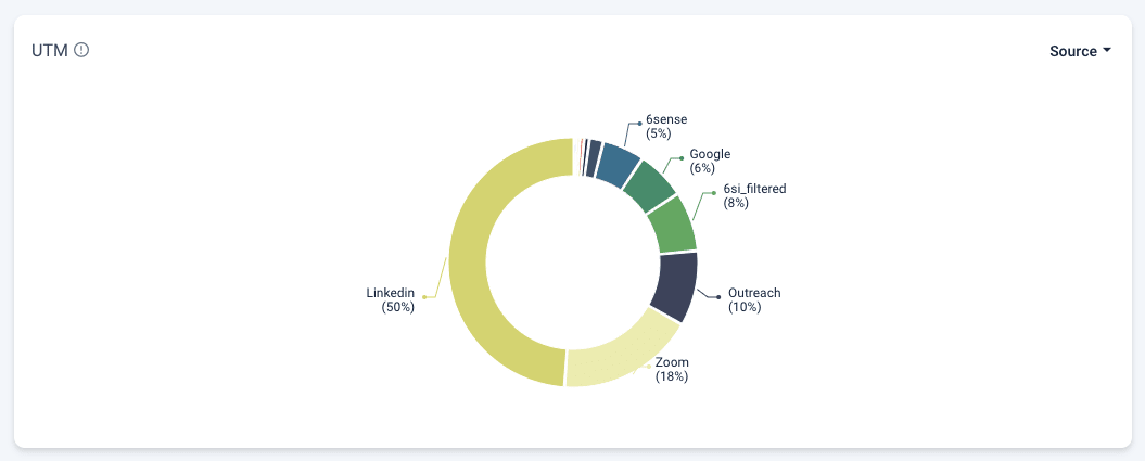 *UTMs widget that breaks down the URL parameters that prospects landed with. Filtered by UTM Source.