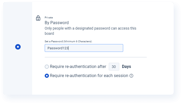 A new option to require Board visitors to authenticate themselves even more frequently is now available for both the Password and 2-Factor Authentication options inside the Access & Security menu.