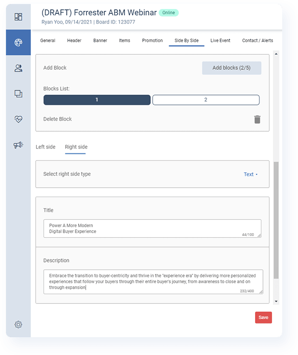 And as if that's not a big enough deal, we also have the release of Side By Side which is something I've been personally excited about for a while. The feature itself is really easy to use (honestly, it's even easier than using Promo Areas), and it really does broaden the design possibilities of Boards. Having played around with it for quite some time already, I can already see myself using this to highlight messaging pillars, value props, solution highlights, event speakers, and more depending on the use case. You need to try it!